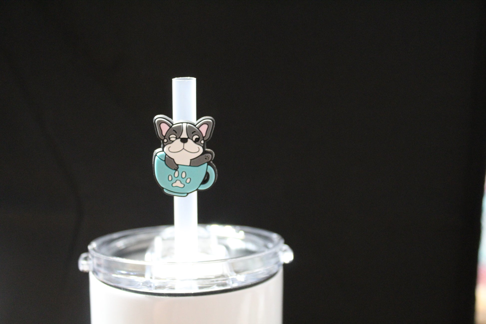 Teacup Puppy Straw Charm - Fits best on regular plastic straws but can go on thin metal straws!